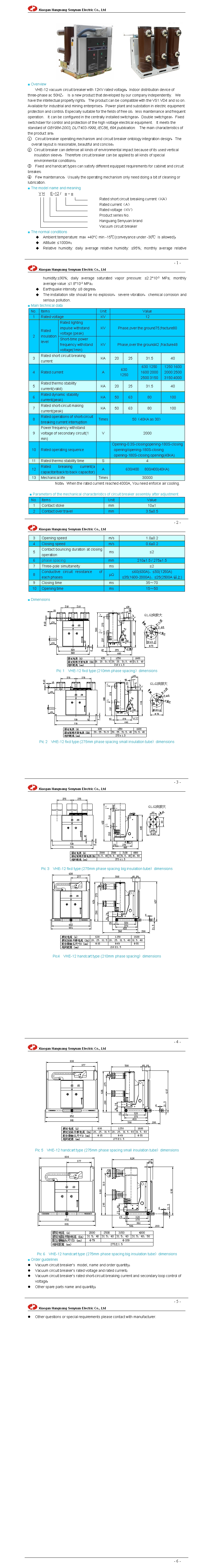 VHE-12 indoor high voltage vacuum circuit breaker (Insulating cylinder structure)