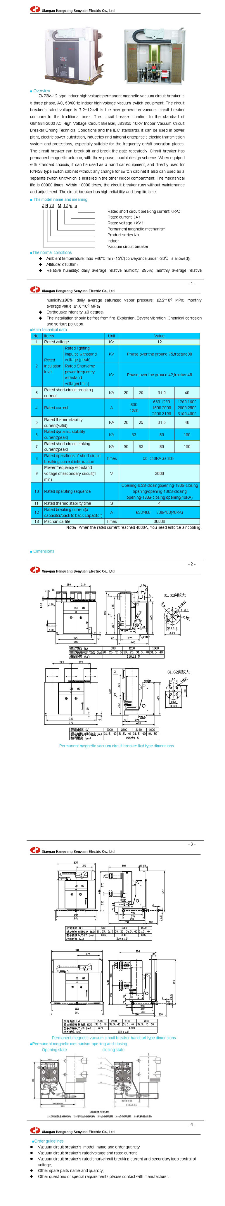 ZN73M-12 permanent magnetic outdoor high voltage vacuum circuit breaker