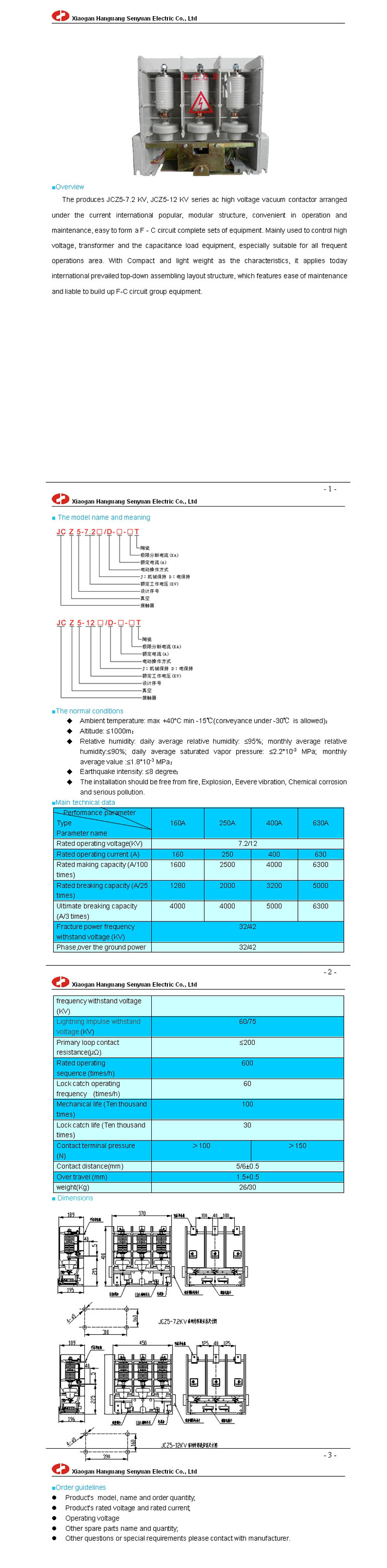 JCZ5-7.2(12) ac high voltage vacuum contactor