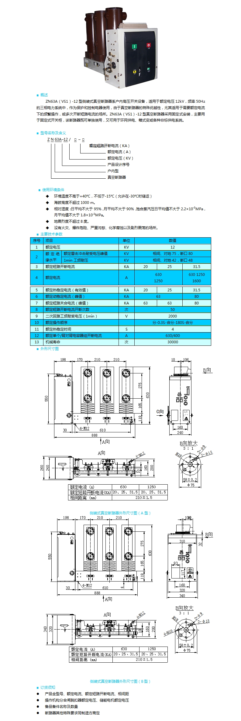 | ZN63A(VS1)-12側裝式戶內高壓真空斷路器 | |
